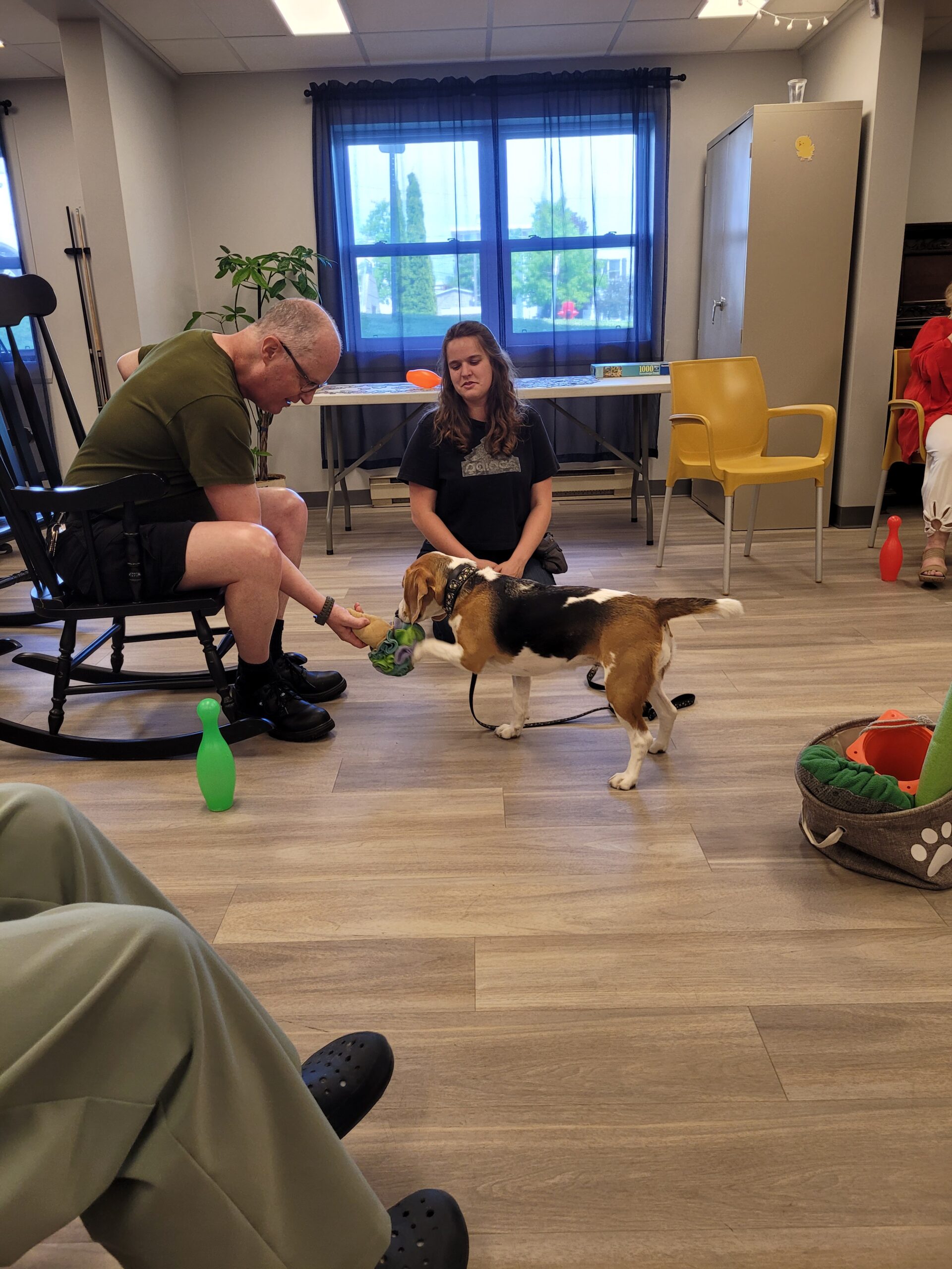Je me nomme Pyer-Olivier Morency et je suis intervenant en stabilité résidentielle au Château Vert. J’accompagne les résidents et les résidentes dans divers domaines et je collabore étroitement avec leurs intervenantes du CIUSSSCN. Je les accompagne pour certains rendez-vous médicaux, des commissions, des rencontres individuelles et même aussi de groupe. Une de nos activés préférées est la console de jeux Wii, nous jouons régulièrement aux quilles, cela leur permet de s’amuser, d’être au moment présent et parfois nous réglons même de petits problèmes qui pour eux sont des montagnes infranchissables. J’aime beaucoup partager leur quotidien, je les connais bien et les respecte et ils me le rendent bien!